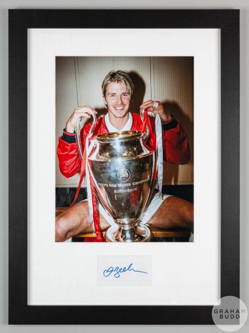David Beckham signed Manchester United 1999 Champions League winner framed photographic display,