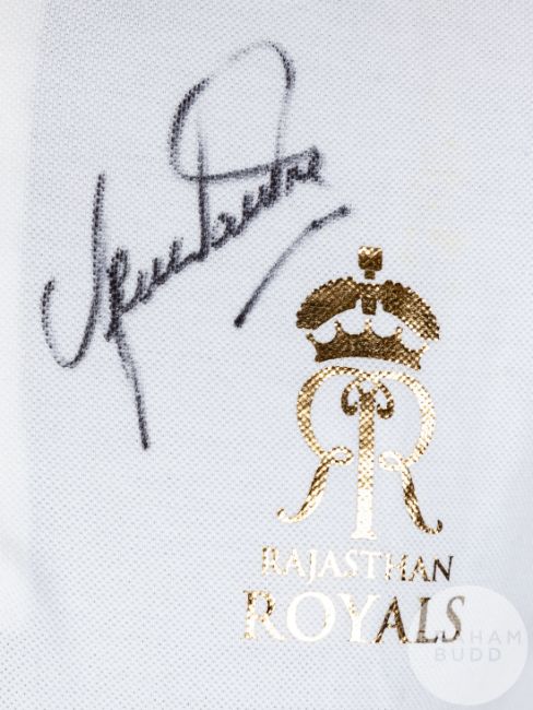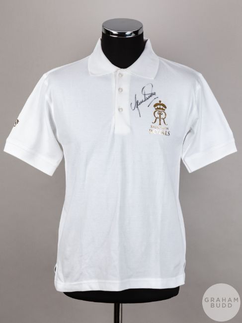 Shane Warne signed white Rajasthan Royals cricket polo shirt,