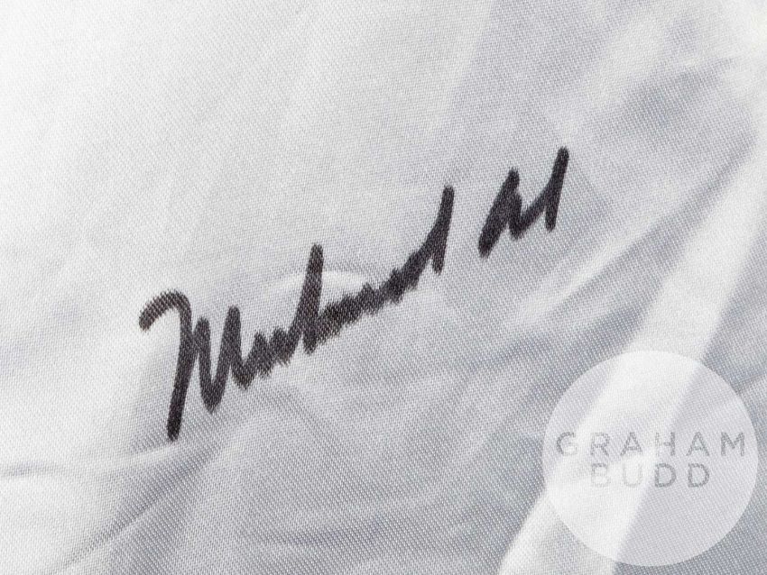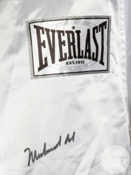 A white and black Everlast Muhammad Ali autographed boxing robe, size L/G