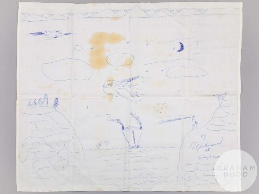 The drawing was done by Muhammad Ali when he was travelling to Dubai on British Caledonian Airways and was gifted to the vendor (member of the cabin crew) by Ali at the end of the flight