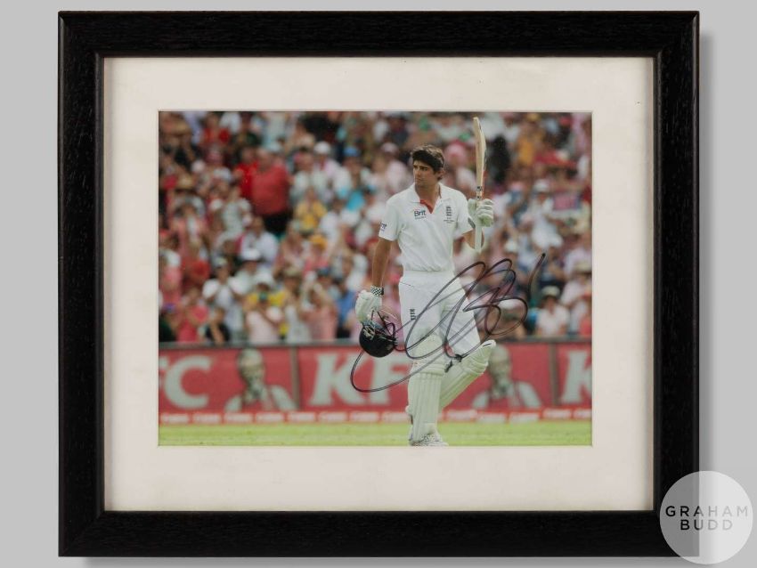 A signed colour photographic print of Alistair Cooke representing England, autographed in black pen, framed and glazed, measuring 9 11/2 x 11 ins.
