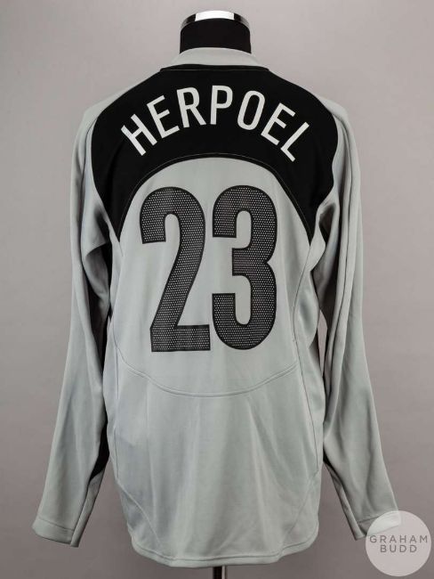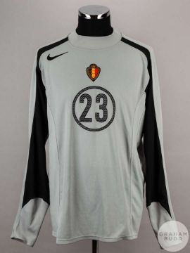Frederic Herpoel grey and black Belgium No.23 goalkeepers shirt, 2004, Nike, size L, long-sleeved with country emblem, reverse lettered HERPOEL