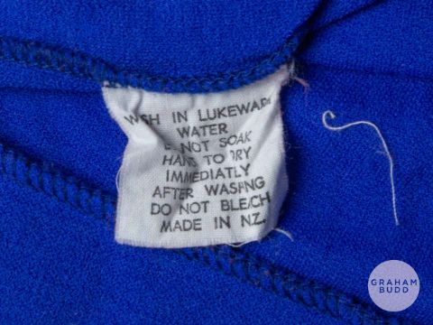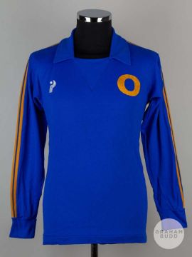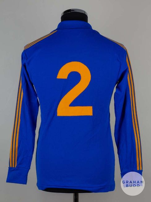 Viv Anderson blue and yellow No.2 long-sleeved shirt, Pex Sportswear with -v-neck style collar Provenance: The Viv Anderson CollectionThe following lots 39 to 159 relate to the career of Viv Anderson MBE. See bio foot of lot 39