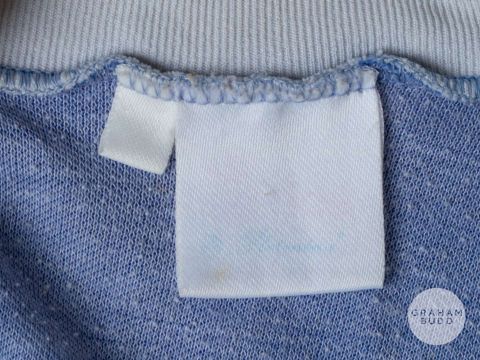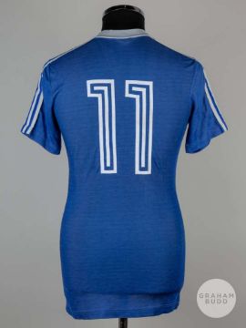 Blue and white No.11 Yugoslavia short-sleeved shirt, 1970s, Adidas, with crew-neck collar and embroidered cloth badge inscribed 29.XI.1943, some discolouration