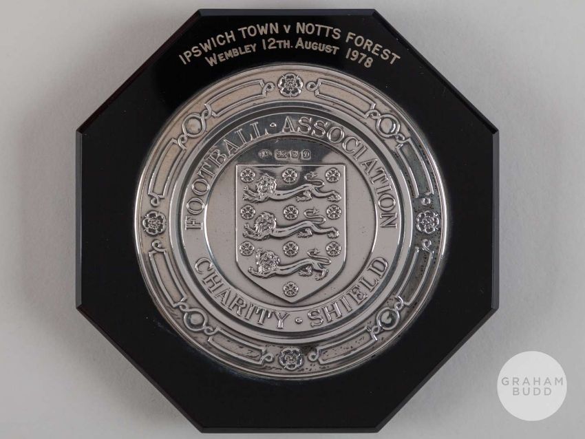 Viv Anderson silver-mounted and black bakelite Nottingham Forest v. Ipswich Town Charity Shield plaque, 1978, inscribed FOOTBALL ASSOCIATION CHARITY SHIELD, IPSWICH TOWN v NOTTS FOREST Wembley 12th August 1978 with easel standProvenance: The Viv Anderson CollectionThe following lots 39 to 159 relate to the career of Viv Anderson MBE. See bio foot of lot 39