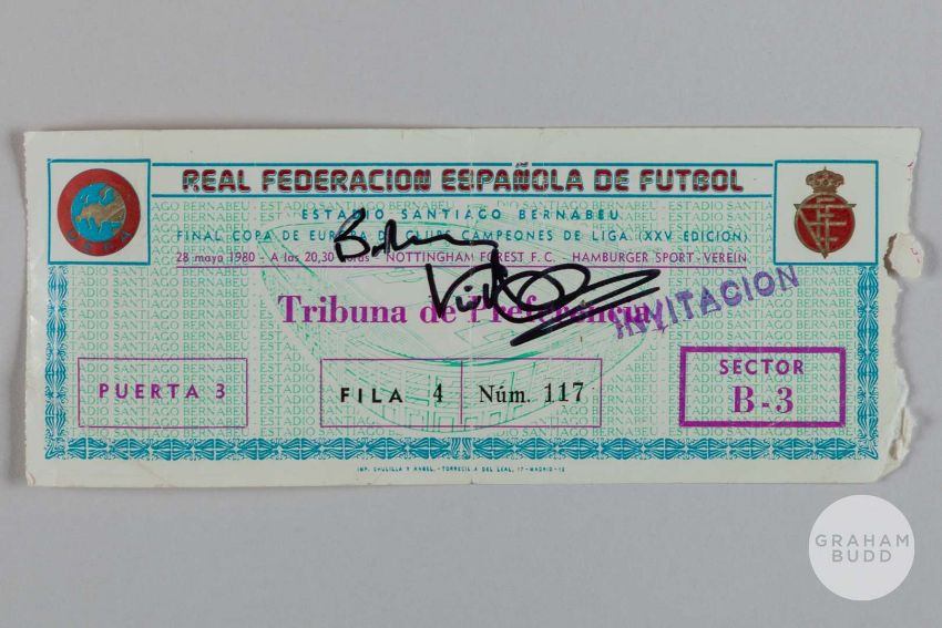 Viv Anderson a Nottingham Forest v. Hamburg European Cup Final ticket, 28th May 1980, autographed by Viv AndersonProvenance: The Viv Anderson CollectionThe following lots 39 to 159 relate to the career of Viv Anderson MBE. See bio foot of lot 39
