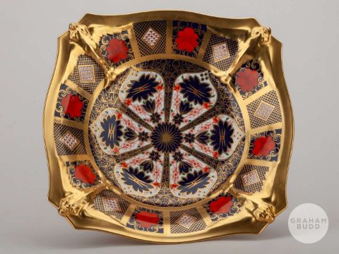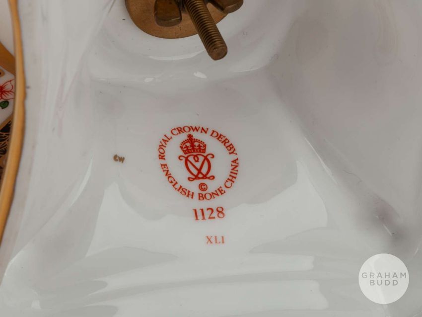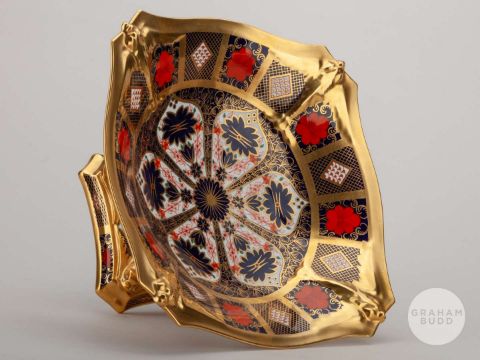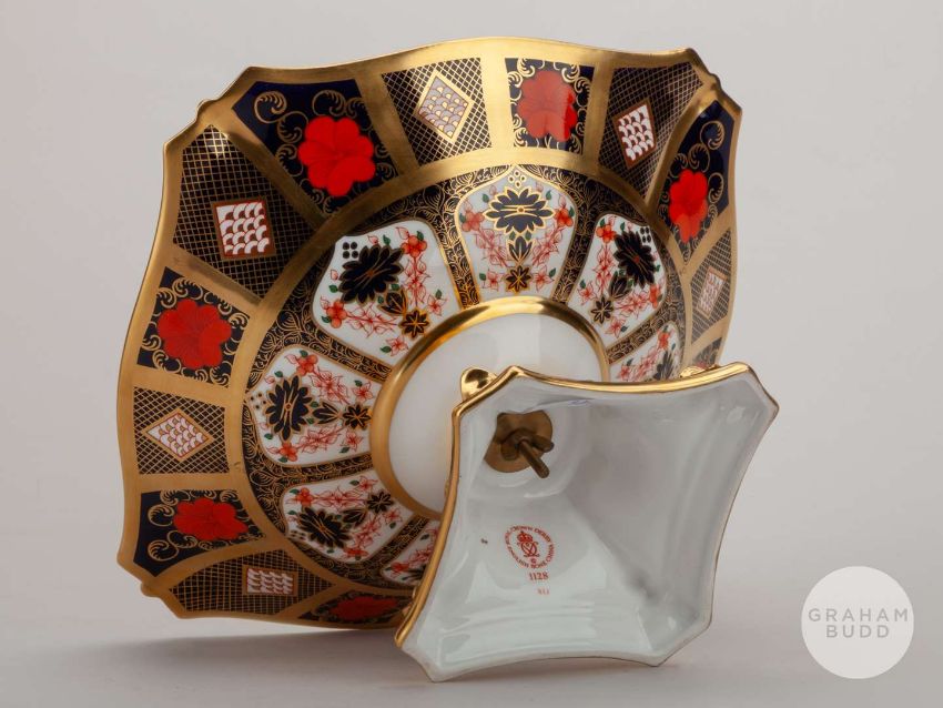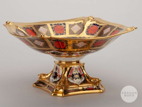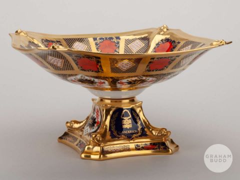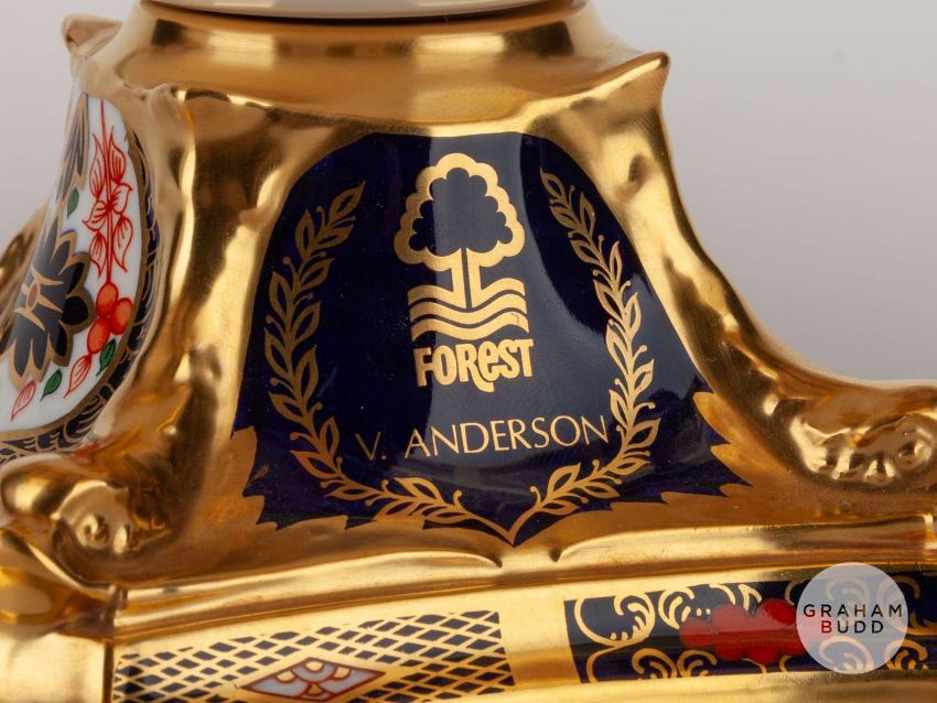 Viv Anderson rare Royal Crown Derby 1128 Imari pattern tazza, the stand decorated FOREST, V. ANDERSON, the base with factory stamped, 27cm wide, 14cm highProvenance: The Viv Anderson CollectionThe following lots 39 to 159 relate to the career of Viv Anderson MBE. See bio foot of lot 39