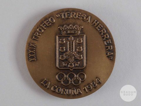 Brian McClair bronze Teresa Herrera Trophy medal, 1984, the obverse inscribed XXXIX TROFEO TERESA HERRERA LA CORUNA 1984, in original fitted case.In the competition United defeated Atletico Madrid 1-0 in the third place paly-off.Provenance: The John Doherty Collection.