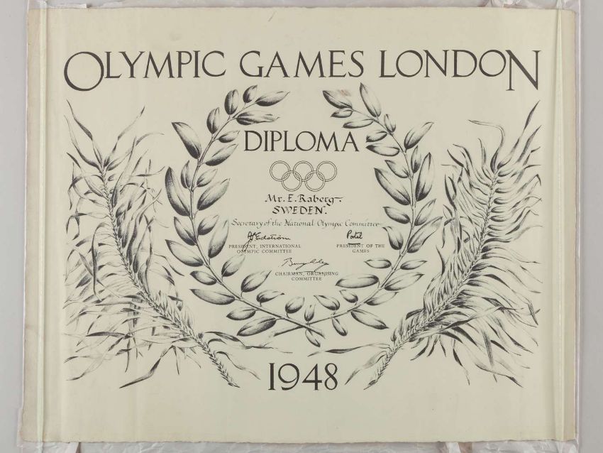 A London 1948 Olympic Games diploma presented to Mr E. Raberg Secretary of the National Olympic Committee, unframed.