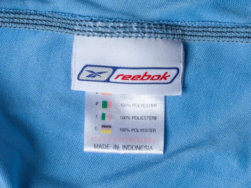 Sun sky blue No.17 Manchester City short sleeved shirt, 2003-04 Rebook size XL, crew neck collar, embroidered badge, reverse lettered SUN with Barclaycard Premiership flashes on the sleeves with some marking on the back.