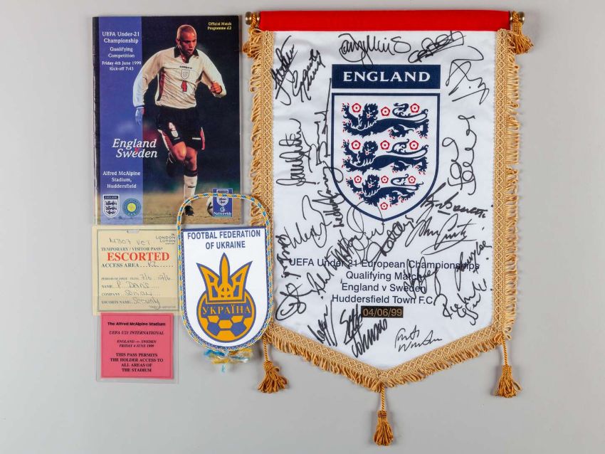 An autographed England Under 21, England v. Sweden pennant, 4th June 1999, with match programme also autographed