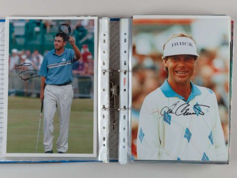 Two large albums of golf autographs including over 250 autographs including Seve, Nick Faldo, Sandy Lyle, Sergio Garcia, etc, (2 ring binders). Complete list of autographs is available upon request