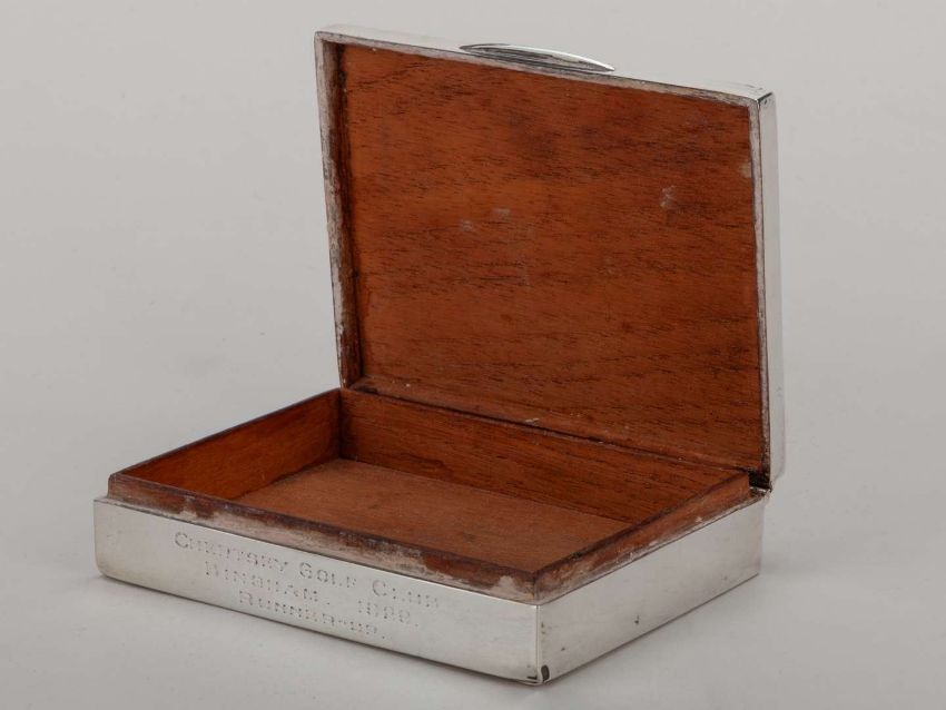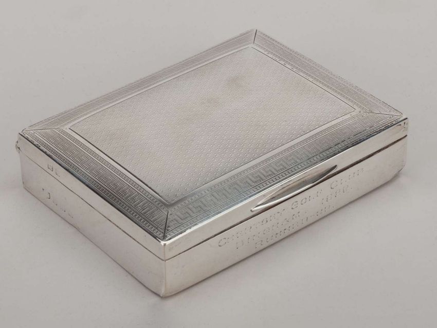 A silver Chertsey Golf Club cigarette case inscribed Chertsey Gold Club, Bingham 1929, Runner-up with hinged lid, 11cm. wide.