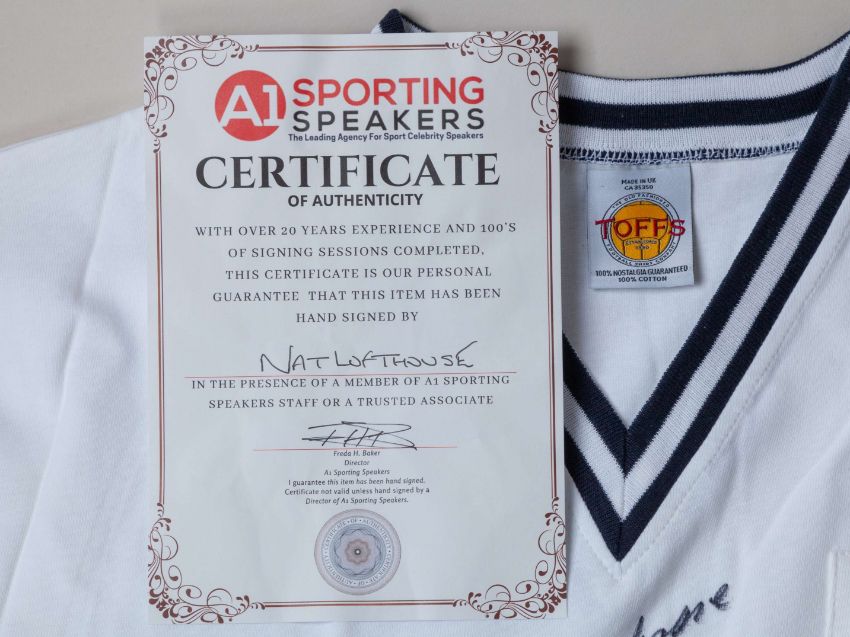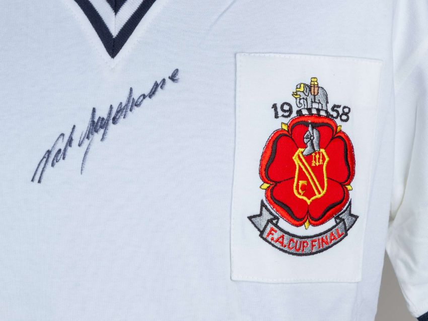 A TOFFS replica Nat Lofthouse autographed 1958 F.A.Cup final shirt with A1 COA