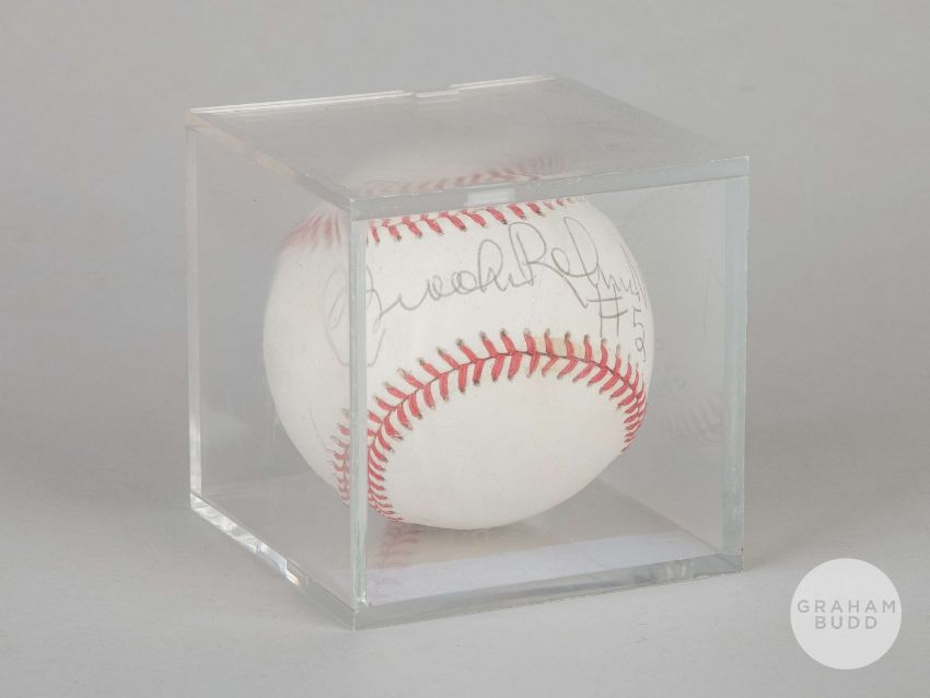 Brooks Robinson signed Rawlings Official Ball American League baseball, signed in black ink and printed with COA registration number 0416931020, housed in a perspex square box, with All American Authentications COA