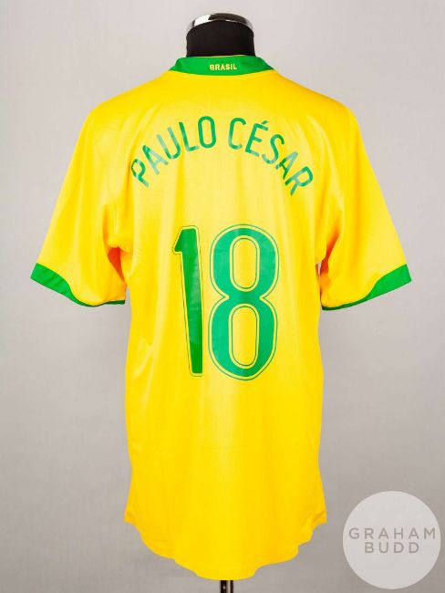 Paulo Cesare yellow No.18 Brazil short sleeved shirt, player issued, Nike size XL crew neck collar, printed badge, reverse lettered CESARE.