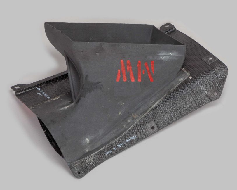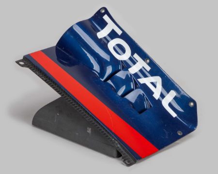 This race-used exit panel chassis top shows clear signs of wear and use, and is a historic item for any collector.
