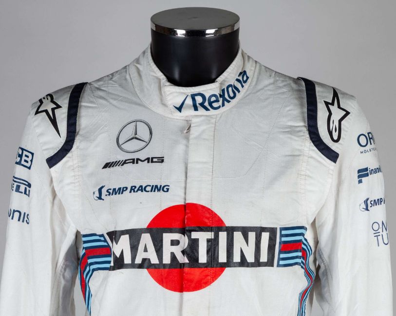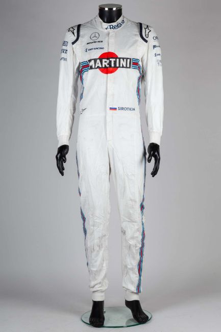 Sergey Sirotkin 2018 Williams Martini Racing race-used race suit, worn by the Russian driver during his debut season with the Williams Martini Racing Team.