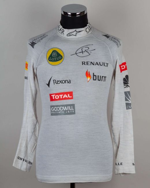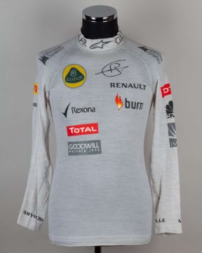 Romain Grosjean Lotus F1 Race Used Signed Nomex Top.