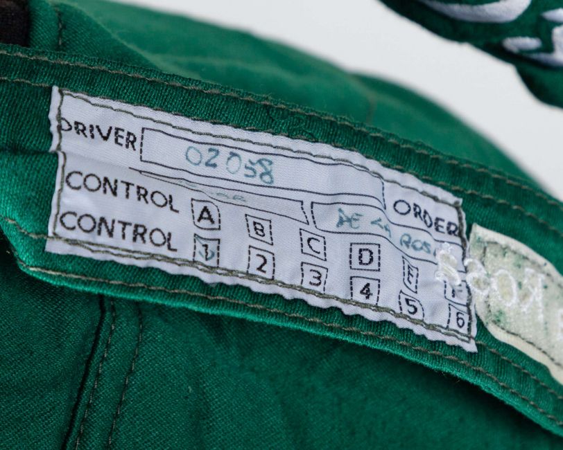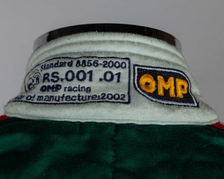The FIA embroidery on the top back of the suit reads: Standard 8856-2000. RS.001.01. Year of manufacture: 2002.