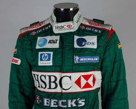 Pedro de la Rosa 2002 Jaguar Racing F1 race-used race suit, worn by the Spanish driver during the 2002 season with the Jaguar Racing Team.