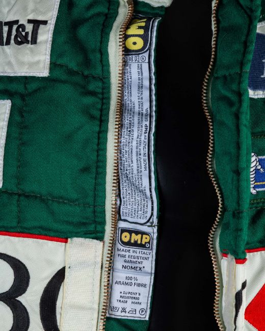 Crafted by OMP, the suit features the Jaguar Racing team’s iconic green and yellow colour scheme.