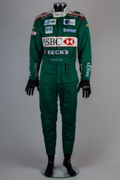 Worn during the 2002 F1 season, this suit carries the marks of authenticity that only a race-worn piece can offer.