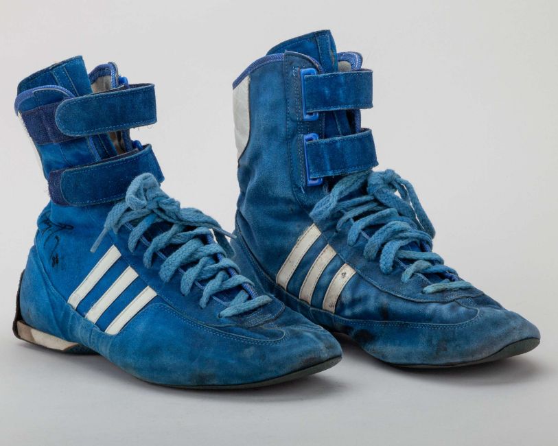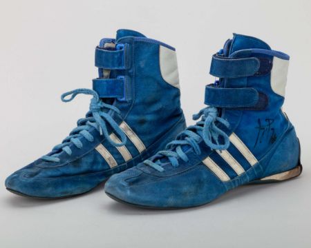 The boots, marked with visible signs of wear and battle, represent an era of F1 where Senna began to cement his status as one of the greatest drivers in history.