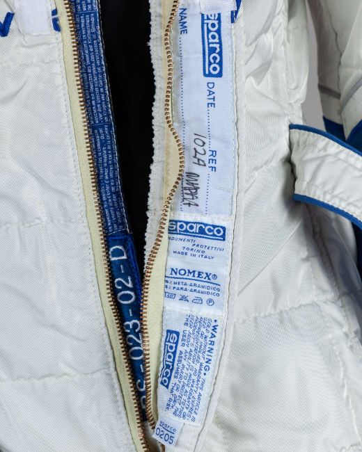This race-used suit bears the authentic signs of wear from 2002 season.