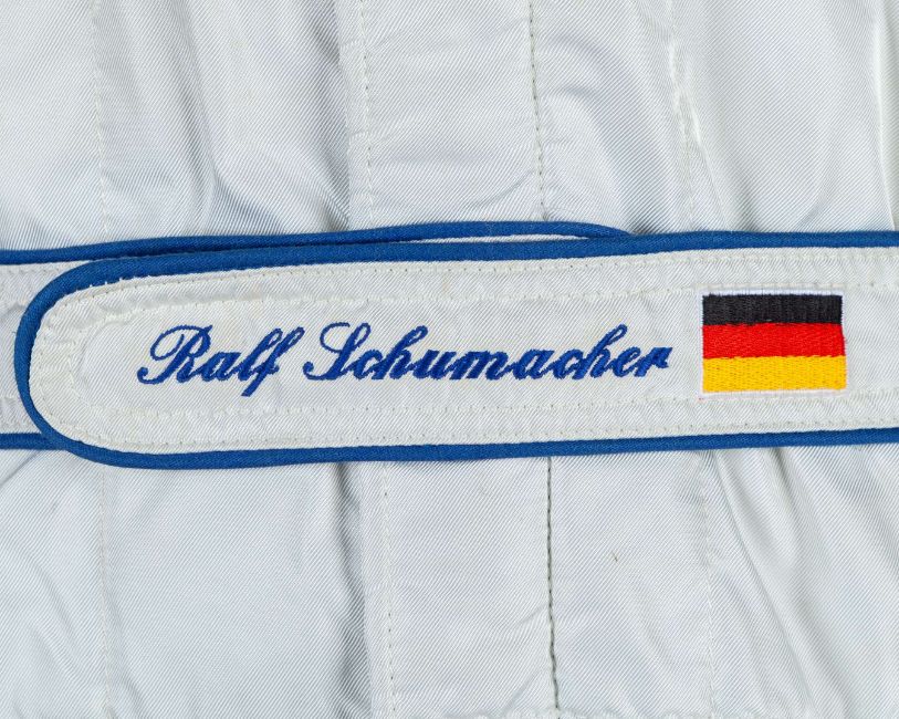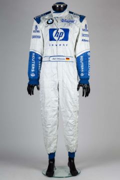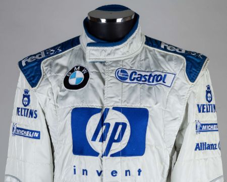 Ralf Schumacher 2002 BMW Williams F1 Team race-used race suit, worn by the German driver during the 2002 Formula 1 season.