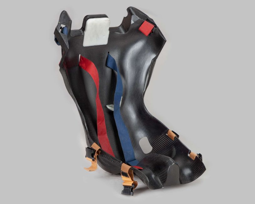 The seat is custom fitted to Vettel’s specifications.