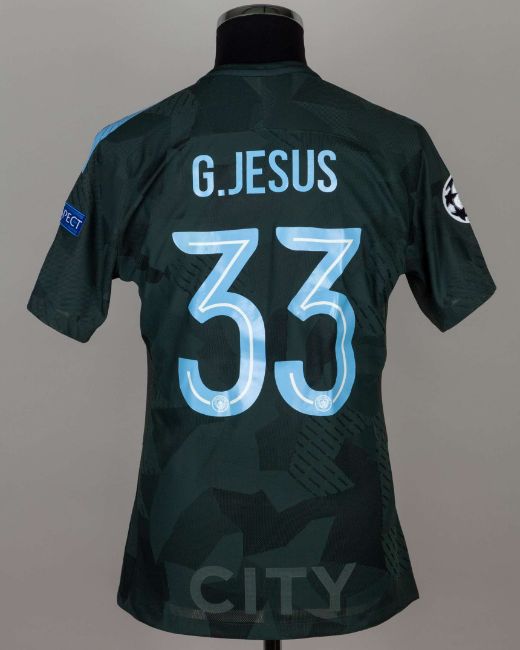 The above shirt was worn by Gabriel Jesus in the match against Napoli played on 1st November 2017, City defeating Napoli 4-2
