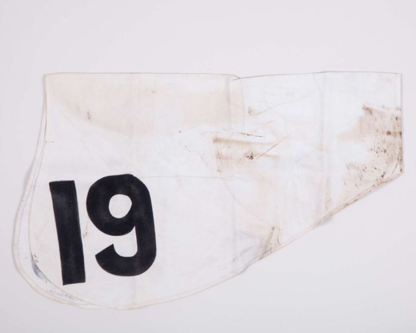 Number cloth for Alignment winner of the 1968 Ebor Handicap at York,
