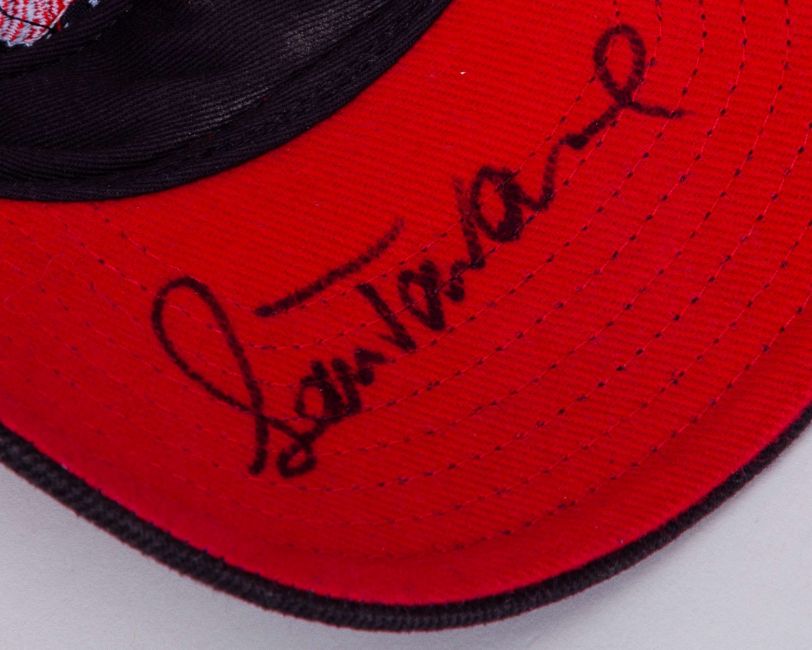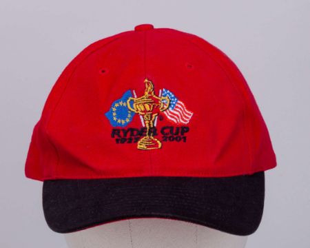 A red and black 2001 Ryder Cup Sam Torrance autographed baseball cap, signed under the peak