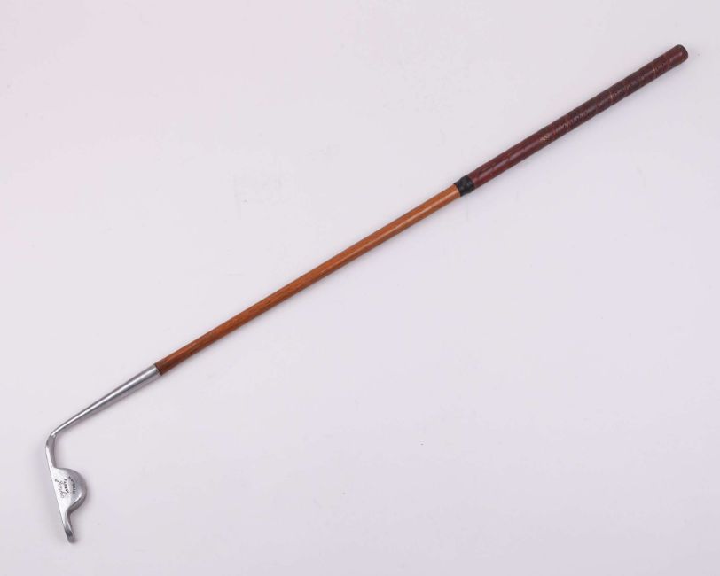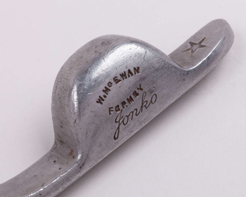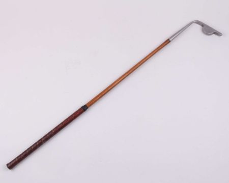 A Jonko style putter, stamped W. McEwan Formby, with hickory shaft and leather grip