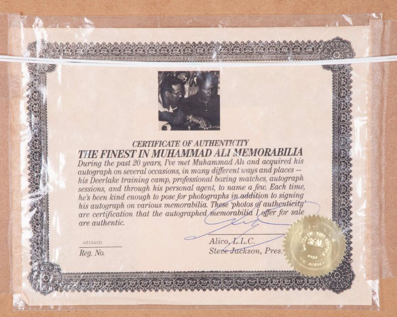 Cassius Clay autographed 1960 United States Olympic Book display, with the book opened on the boxing section where a picture of Clay (Muhammad Ali) and Bing Crosby is autographed, with dustcover displayed, with tear and worn dustcover, with COA, framed and glazed, 86 x 48cm